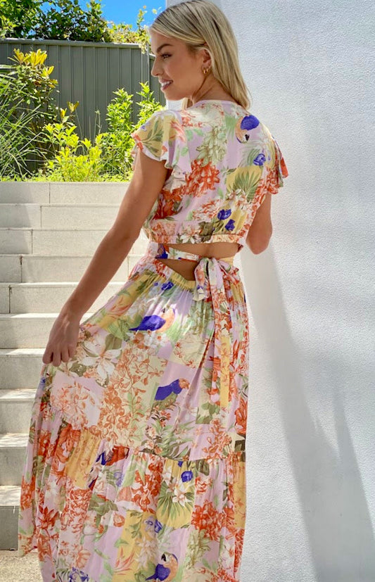 Floral Patchwork Ruffle Sleeve Dress
