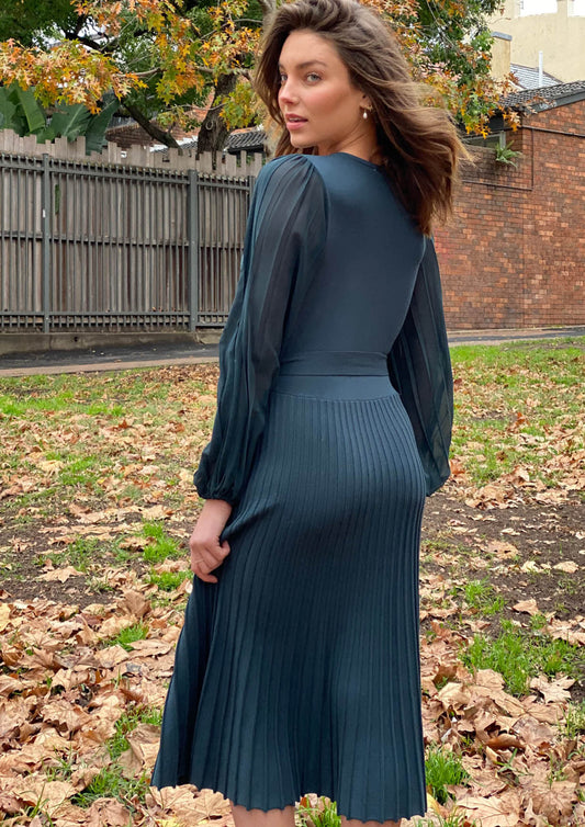 Knit Dress With Chiffon Sleeve