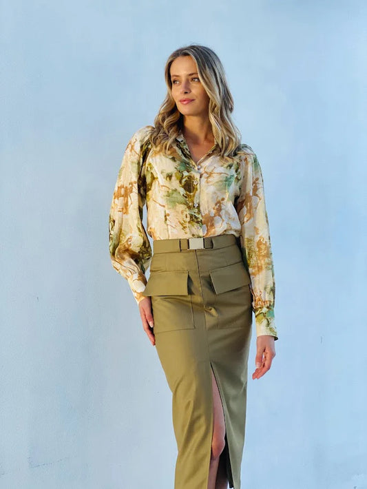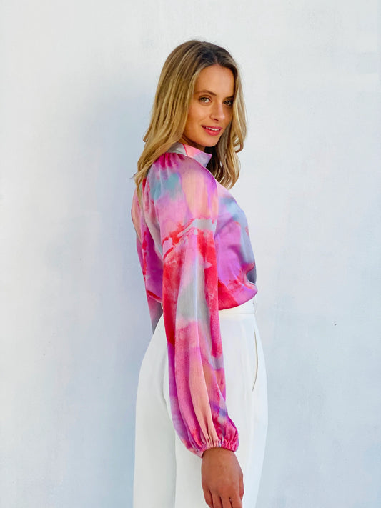 Watercolour Balloon Sleeve Blouse
