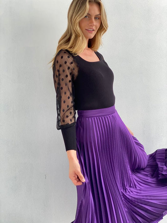 Mesh Polka Dot Sleeve Knit Top