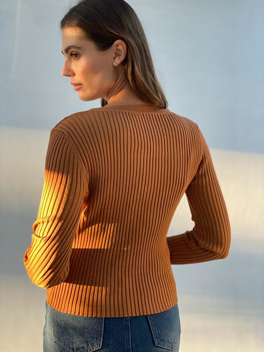 Ribbed V-Neck Knit Top