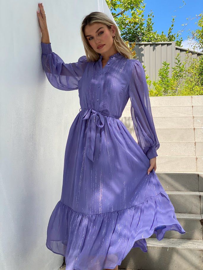 Got plans for the weekend babe? This long sleeve midi dress is sure to be the answer to all your styling dilemmas. This dress is sure to help you show off your confident side girl! This dress is made with beautiful polyester material with a silver lurex detail that runs through the fabric. How could you not be in love? Pair with nude mules and simple accessories to have heads turning for all the right reasons.