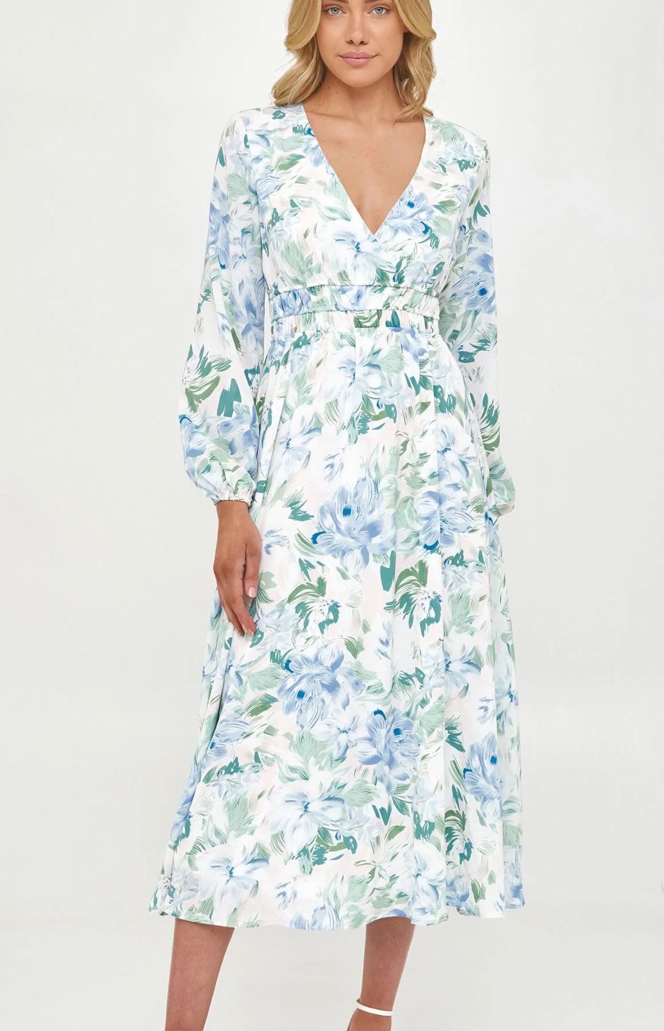 Printed Floral Maxi with Elastic Waist Dress