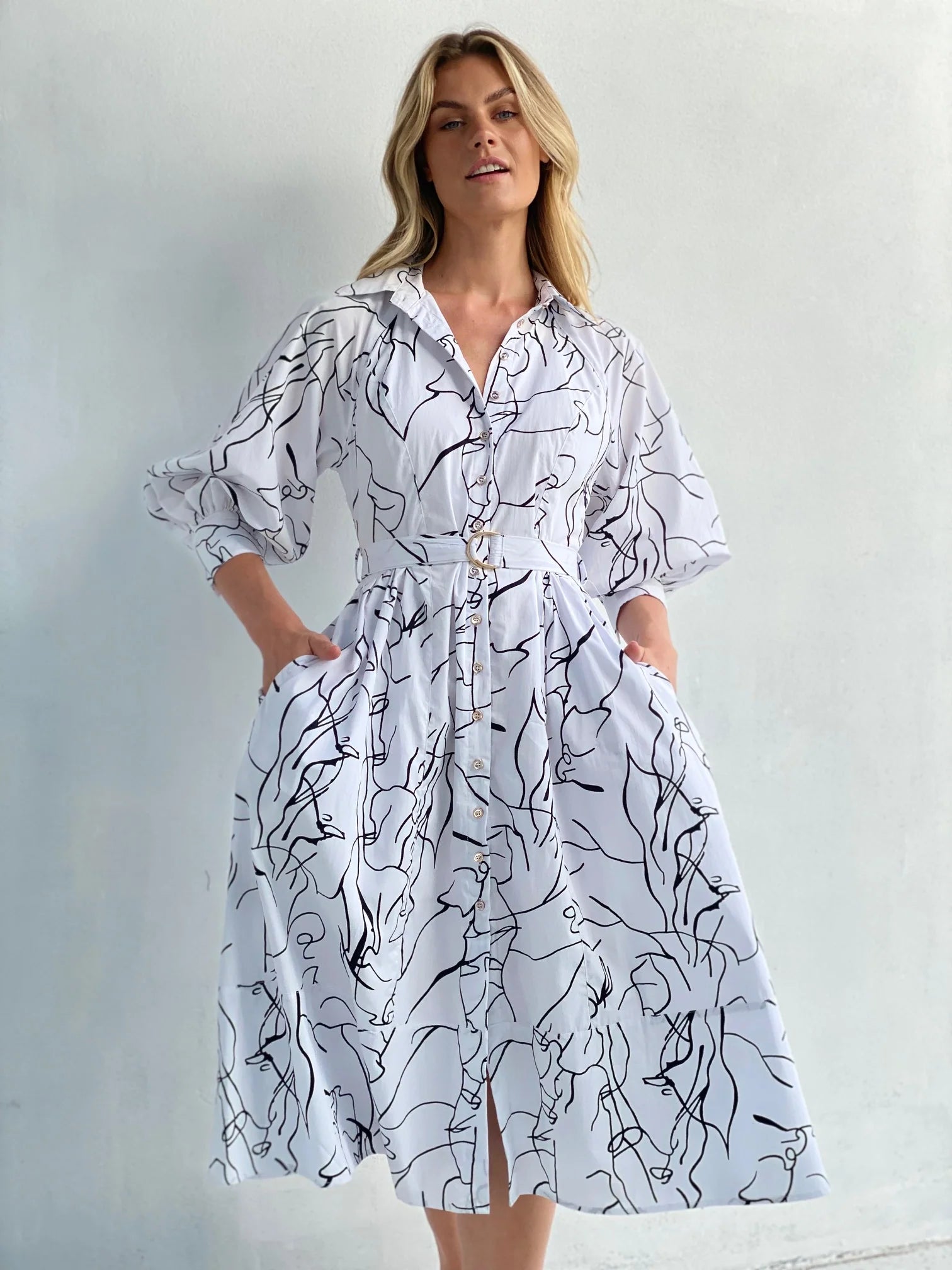 Looking for a dreamy look for your weekend plans girl? Then this white midi dress is everything you have been searching for. With a white background and black scribble print, collar neck design & mid length adding some glam vibes, how could you not love? Pair with black or white mules & add some cute gold accessories.